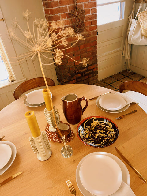 Our Ceramics are made with locally sourced clay by artisans in Portugal using a single-firing process that is better for the environment. All pieces are finished with our elegant & durable semi-matte glaze, and are safe for the dishwasher, freezer & oven up to 480°.