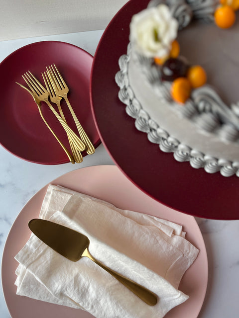 End the evening beautifully. The Dessert Table Set pairs our Everyday Linen Napkins with four Ceramic Treat Plates — everything you need to serve something sweet with ease. Designed for both everyday indulgence and holiday rituals, this set brings a simple, thoughtful finish to the table. Choose from four Everyday Linen Colors and nine Ceramic colors.