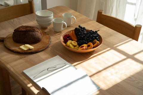 Great simplicity and quality, most of our Year & Day is visible on open shelves in the kitchen.