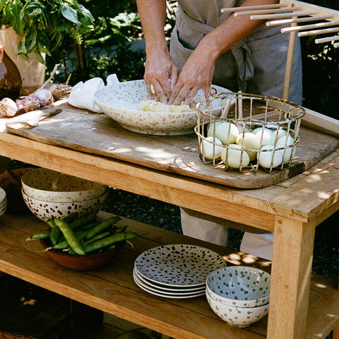 Made in Portugal in a region respected for its centuries-old legacy of craftsmanship, our Ceramics are sourced from local earth, fired just once to reduce emissions, and glazed in our Pacific-inspired palette.